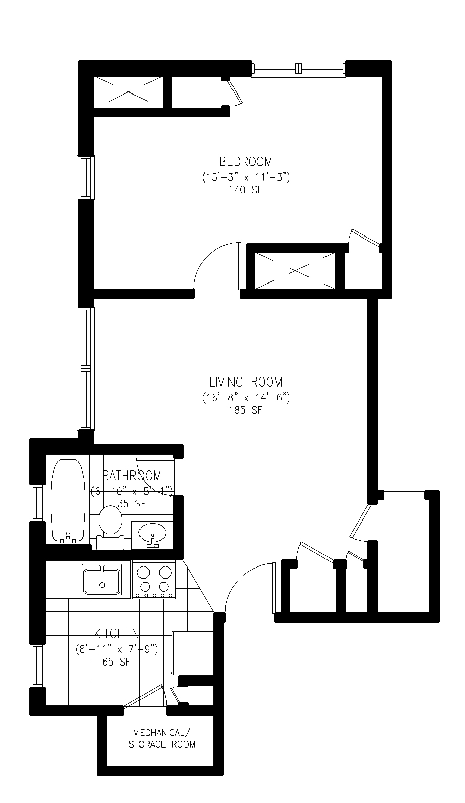 4 Bedroom Apartment with 1.5 Bathrooms.